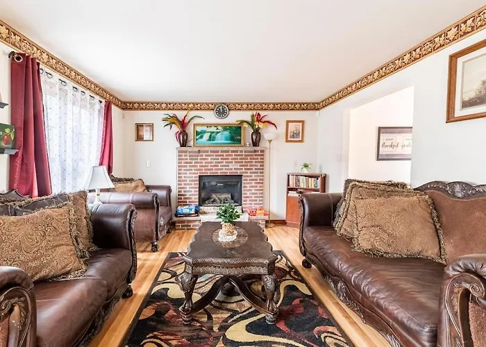 The accommodations at Cheerful Pocono Home Away From Home exude warmth and tranquility. Each spacious room is tastefully designed and equipped with modern amenities to ensure a relaxed stay. Guests can enjoy stunning views of the lush surrounding nature from their balconies, creating a perfect backdrop for a peaceful getaway after a day of adventure.
